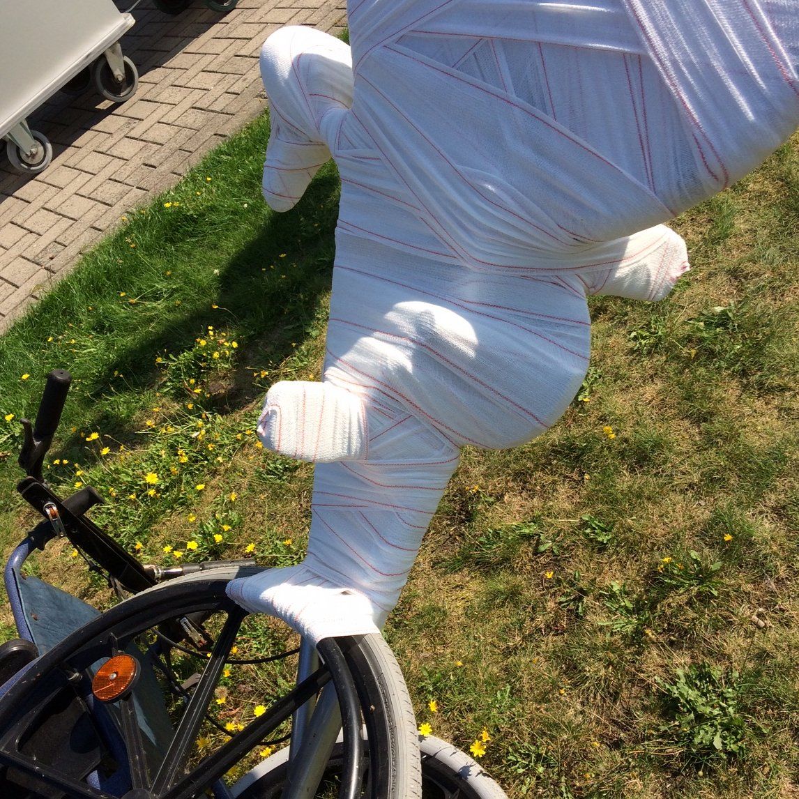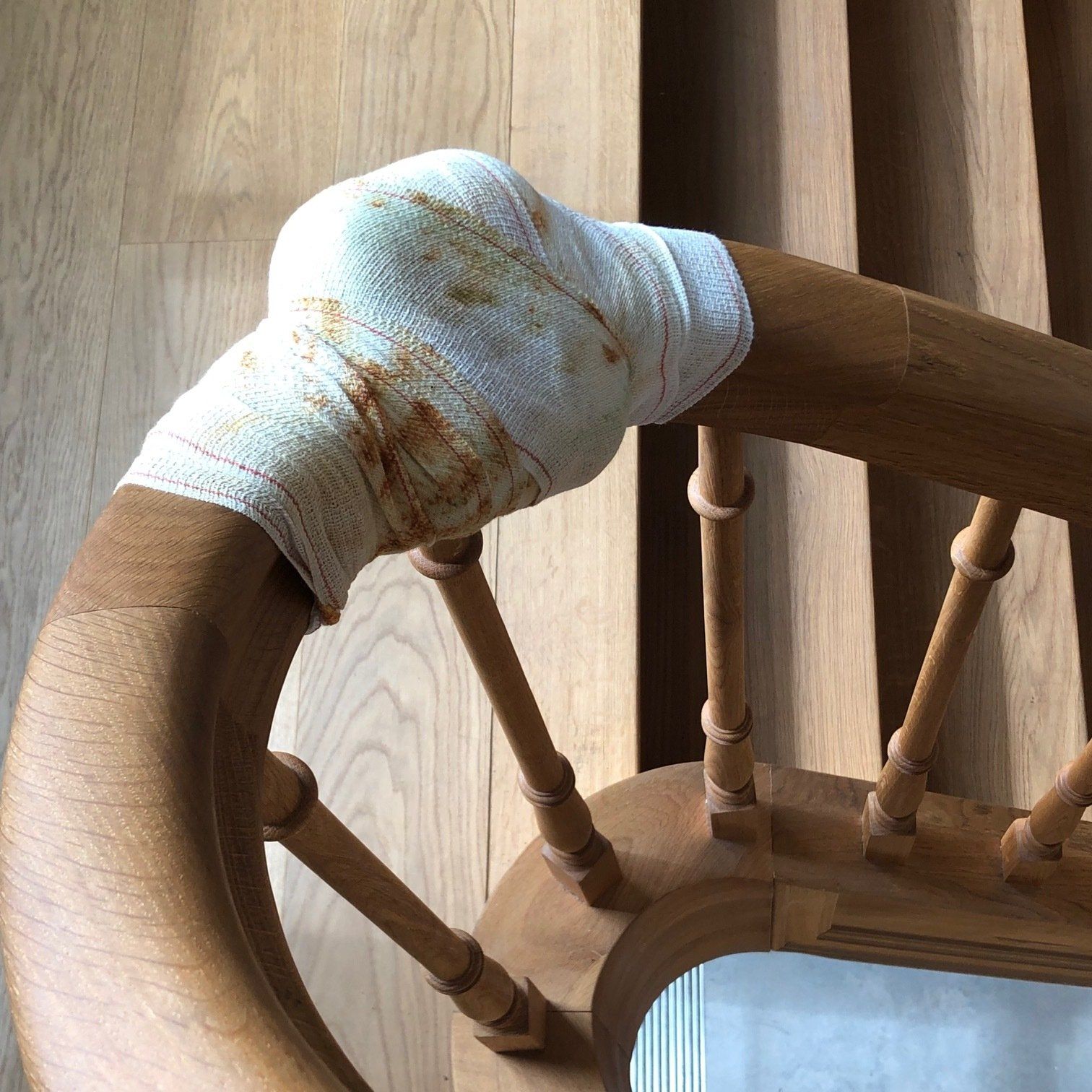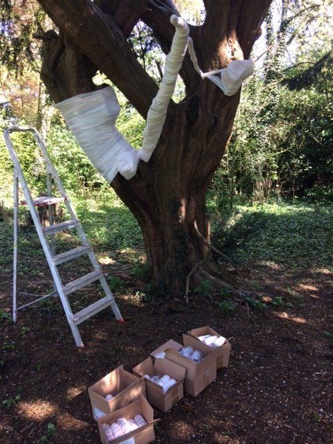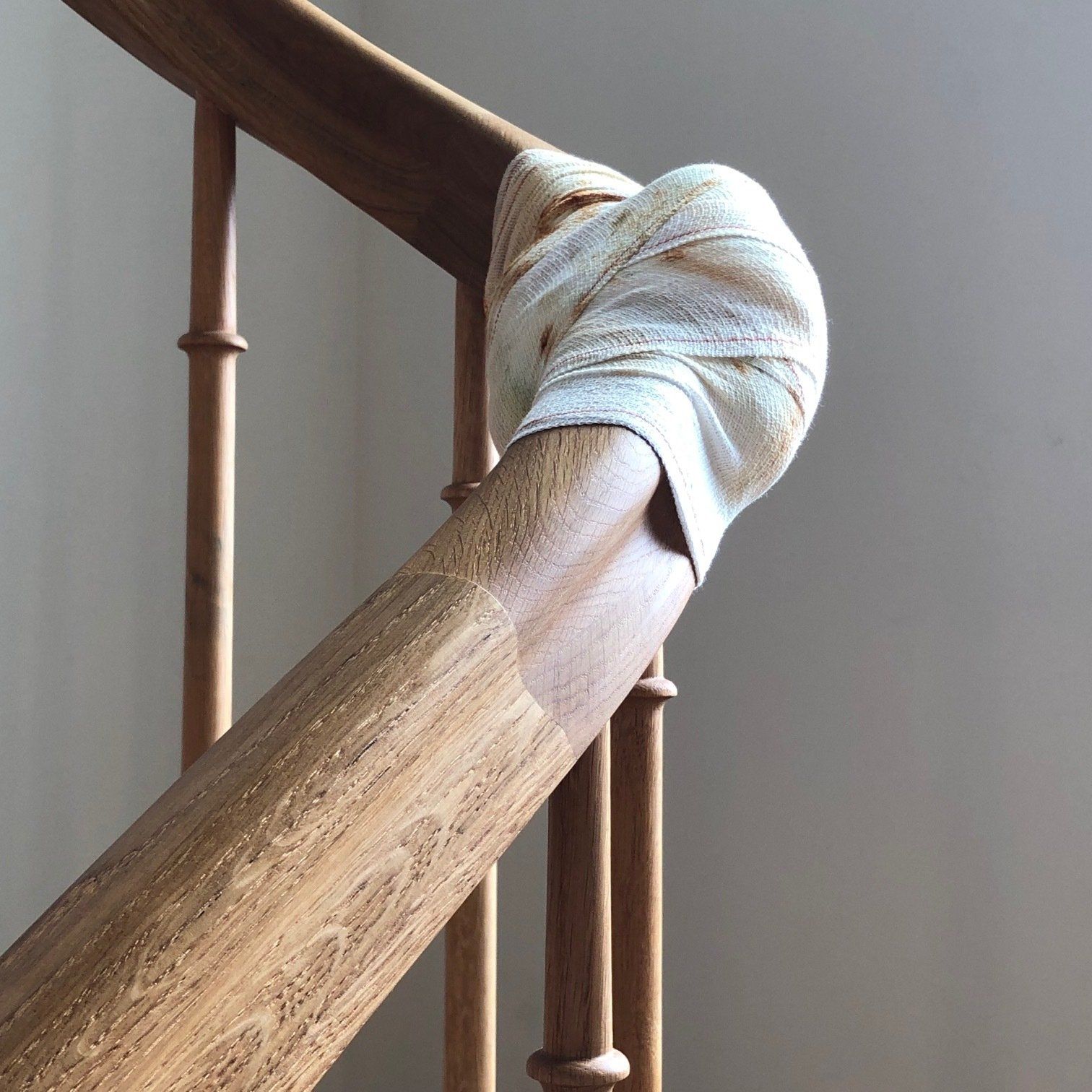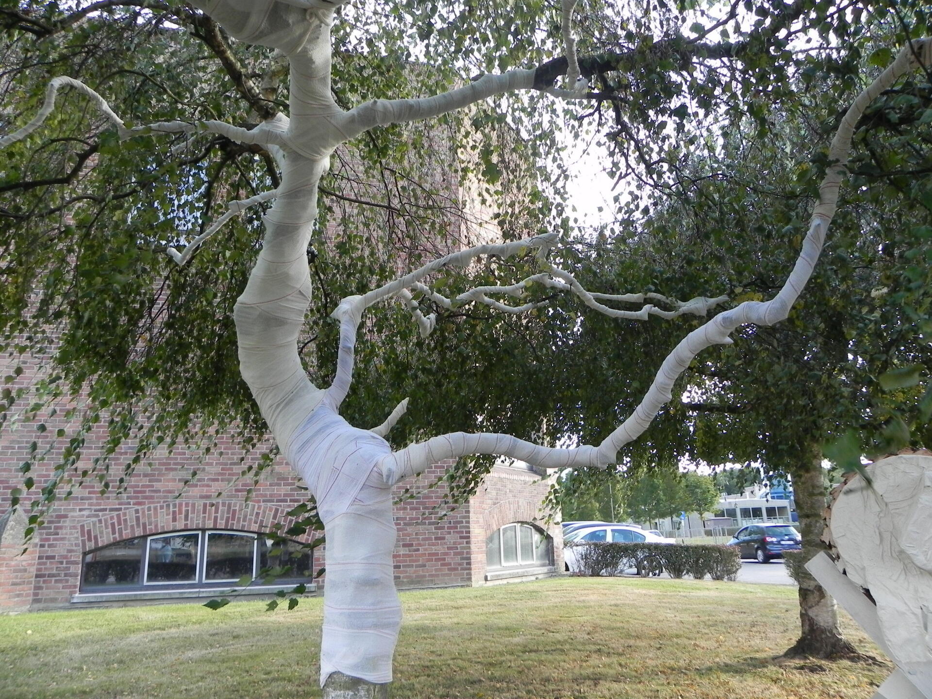 Bomen , takken, objecten worden verzwachteld. Ze worden in windsels gedraaid, beschermd, verzorgd, omwonden en verbonden. Na verloop van tijd worden de windsels verwijderd, deze dragen de sporen van de onzichtbare verwondingen die altijd al aanwezig waren en tevens ook de sporen van de tijd die de vergankelijkheid in zich draagt. Het is niet altijd duidelijk wie er nu juist de windsels nodig had, de ondersteunde of de ondersteuner. De wandelstok en de gebruiker ervan zijn beiden onlosmakelijk met elkaar verbonden.